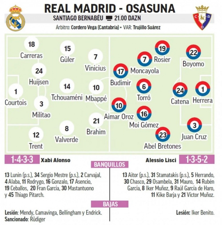 西媒披露皇马新赛季首战先发十一人